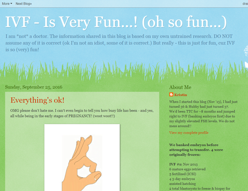 Now this is a great blog: IVF Is Very Fun! It takes you step by step through, what to expect at the transfer, what to expect after the transfer, and the two week wait. I can tell you that the two week wait will mess with you. Are you pregnant? Are you not? You have a headache, your breasts are tender, what does that mean? This blog will help show you that you’re totally normal to think that everything might be a sign for pregnancy.